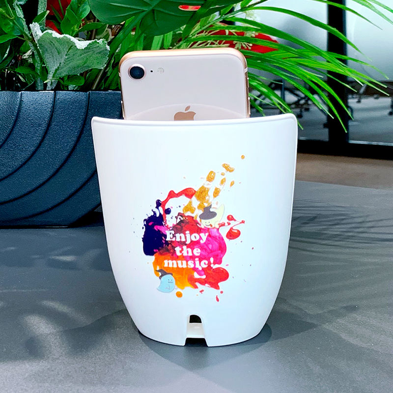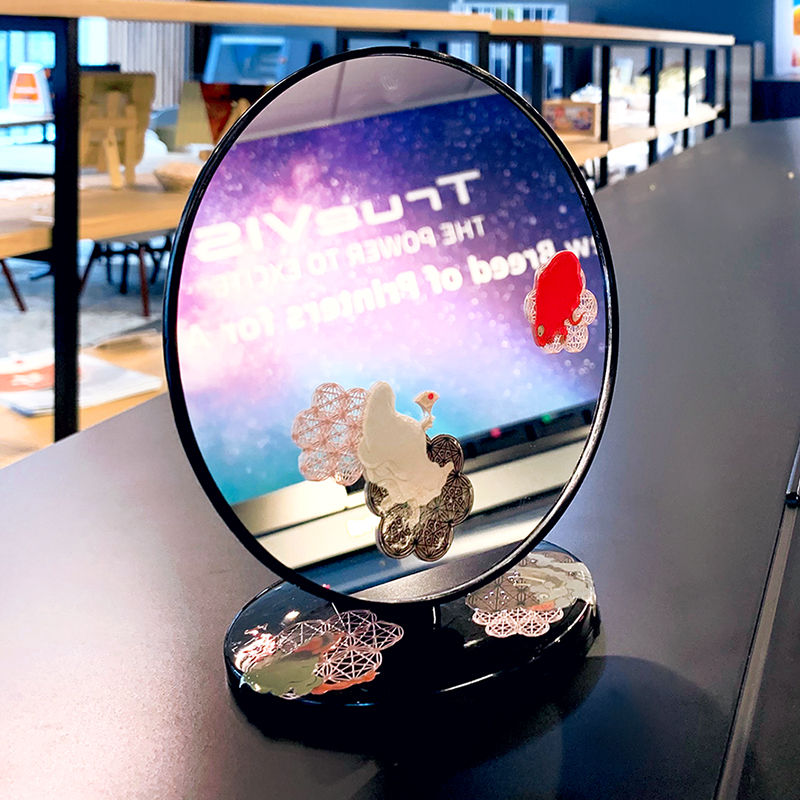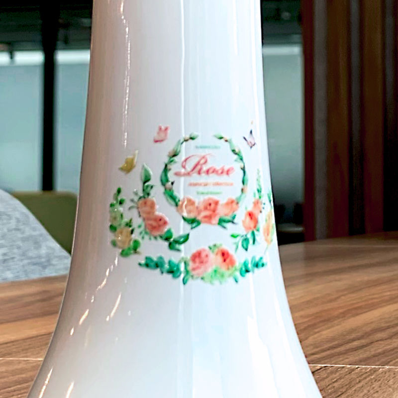 凹凸部周辺へのロゴ入れ | 曲面にもフルカラー可能 | 鏡面にもダイレクトに加飾 | リース柄も自然な仕上がり |