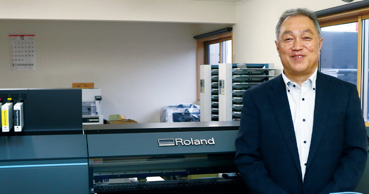 小ロットのTシャツと看板は内製した方が納期短縮やコスト削減に繋がるため、2023年にローランド ディー.ジー.製の溶剤プリンター「VG3-540」を導入しました。展示会のサイン&ディスプレイショウで複数メーカーの溶剤機を比較し、最も発色が良かったのがこのプリンターでした。さらに、ウエアプリントの仕事が増加し、デザインの多様化、シートのカス取り作業の手間を考え、DTFプリンターを検討しはじめました。
