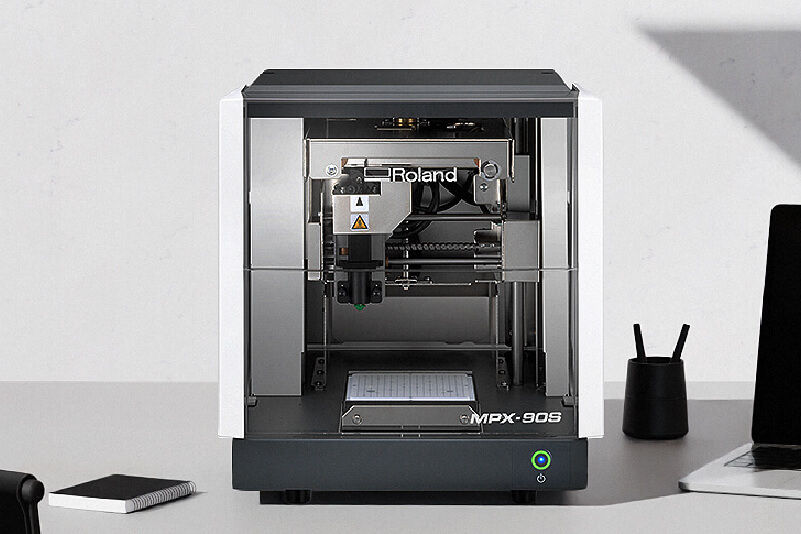 金属素材に写真やイラスト、文字などを簡単にマーキングできる「MPX-90S」。オフィスやショップの店頭で手軽に運用でき、どなたでも簡単に個性あふれるオリジナルグッズを製作できます。