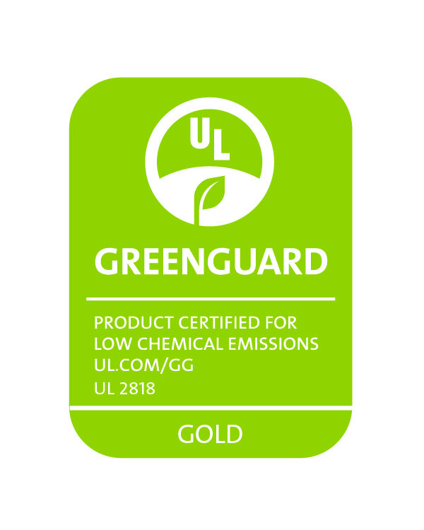 ※グリーンガード認証は、世界で最も厳しい低VOC 放散製品の基準として広く認められており、このマークは厳しい基準をクリアしている製品だけに与えられます。グリーンガード認証には通常の認証「Certified」と、より厳しい基準値を設定している認証「Gold」があります。
